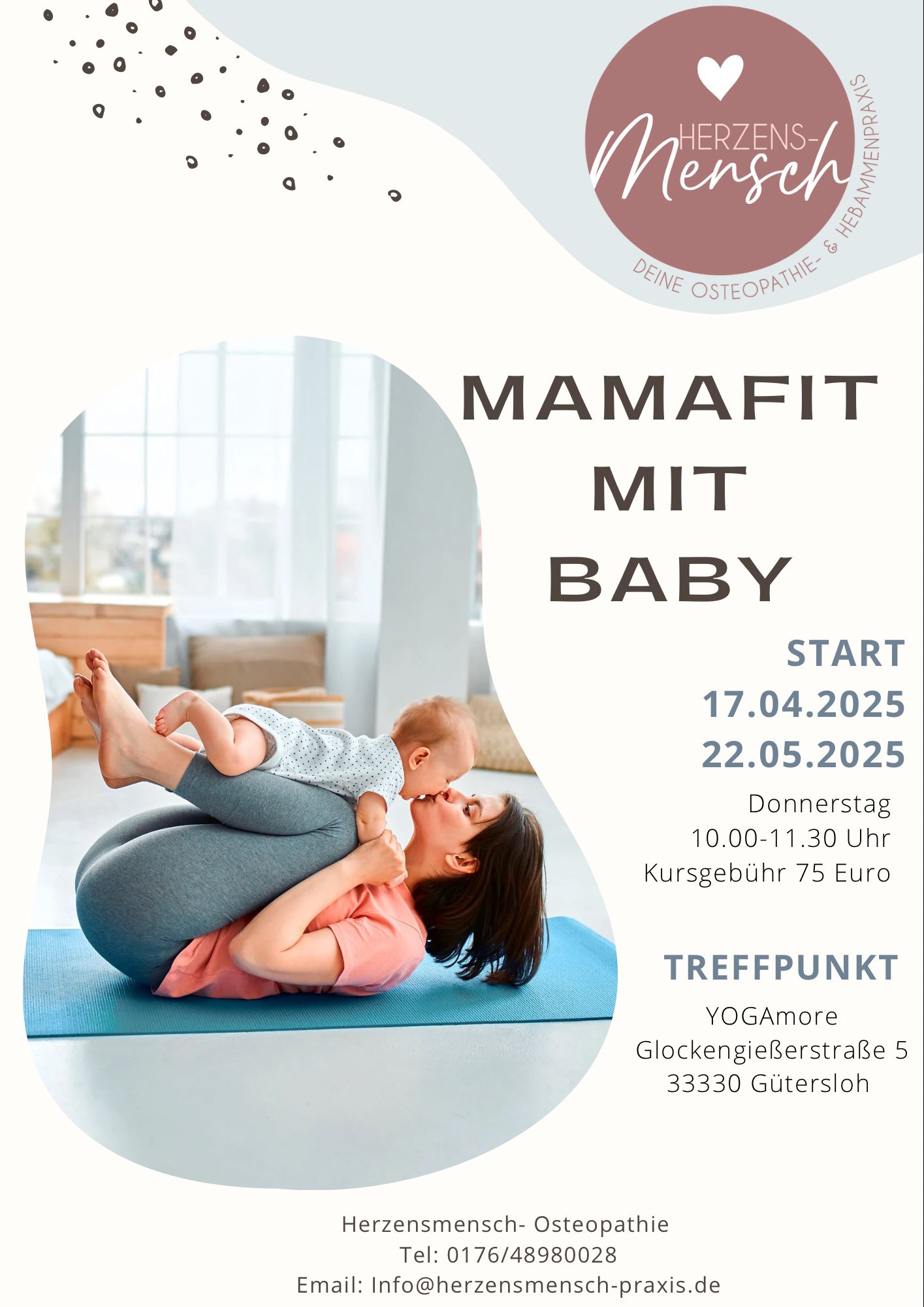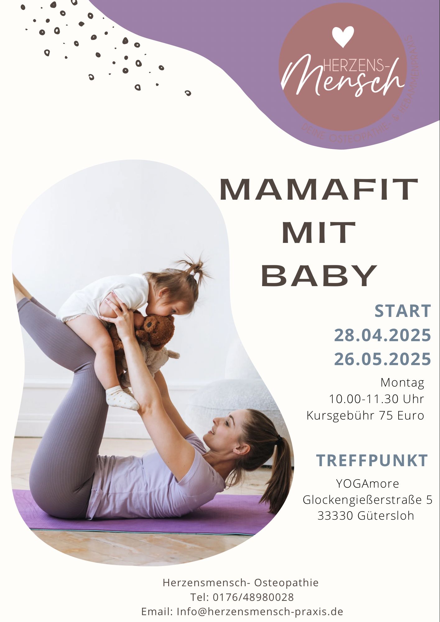 In unserem MamaFit mit Baby Kurs bieten wir frisch gebackenen Müttern die Möglichkeit, gemeinsam mit ihren Babys aktiv und wieder fit zu werden. In einer entspannten und unterstützenden Atmosphäre führen wir Übungen zur Rückbildung, Kräftigung und Mobilisierung durch, die speziell auf die Bedürfnisse junger Mütter abgestimmt sind. Dabei können die Mamas ihr Baby mit einbeziehen, sei es beim Tragen oder als Unterstützung bei den Übungen. Der Kurs dient nicht nur der körperlichen Fitness, sondern auch dem Austausch mit anderen Müttern und der Stärkung der Bindung zum Baby.